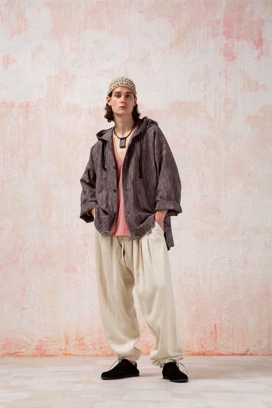 UNKRUID ふと静寂に耳を澄ませると、過去、現在、未来が交差する瞬間が見えてくる。UNKRUIDは、その一瞬一瞬に宿る美しさをデザインに映し出し、時間と空間を超えて成長する物語を紡ぐ。 クラフトの深化 ベルギー・アントワープを拠点にするUNKRUIDは、デザイン、仕立て、パターンメイキングのすべてを独自に探求し、研ぎ澄ませる。厳選された天然素材は、熟練の職人が手がける織物工場から調達され、ときに共同開発も行われる。一針一針に込められた時間と手仕事の軌跡。だからこそ、作品は限定されたエディションでのみ生み出され、シリアルナンバーが刻まれる。 時をまとう美学 UNKRUIDのデザイン哲学は、素材の変化を受け入れ、育むことにある。着るたび、使うたびに、布は新たな表情を見せ、時間を纏うように美しくなる。懐かしさと現代の技術が交わり、職人技の真価が浮かび上がる。 UNKRUIDの作品は、時間とともにあなたの生き方に馴染み、日々の中で静かに、新たな魅力を生み出し続ける。