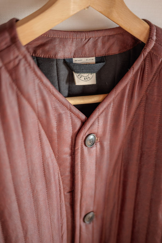 JAN-JAN VAN ESSCHE COLLARLESS PADDED JACKET SHULIANG SILK PADDED OXBLOOD
