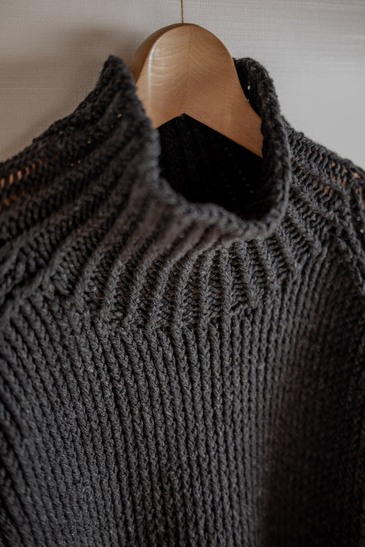 JAN-JAN VAN ESSCHE HAND KNITTED TURTLE NECK SWEATER LALIN PITCH BLACK