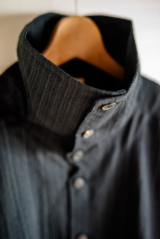 JAN-JAN VAN ESSCHE SHIRT JACKET WITH HIGH STANDING COLLAR DARK STRIPED