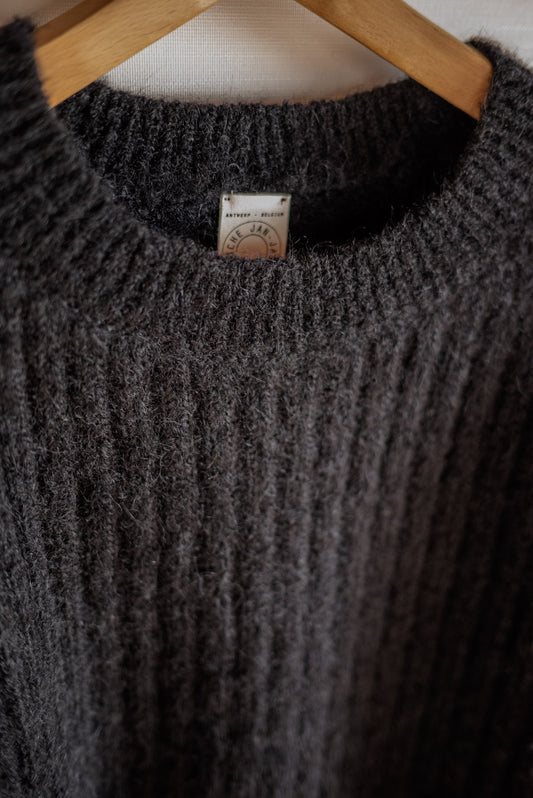 JAN-JAN VAN ESSCHE WIDE FIT KNITTED CREW-NECK SWEATER GOAT MOHAIR BLACK