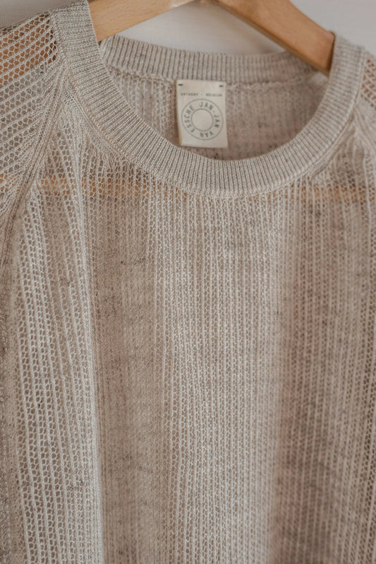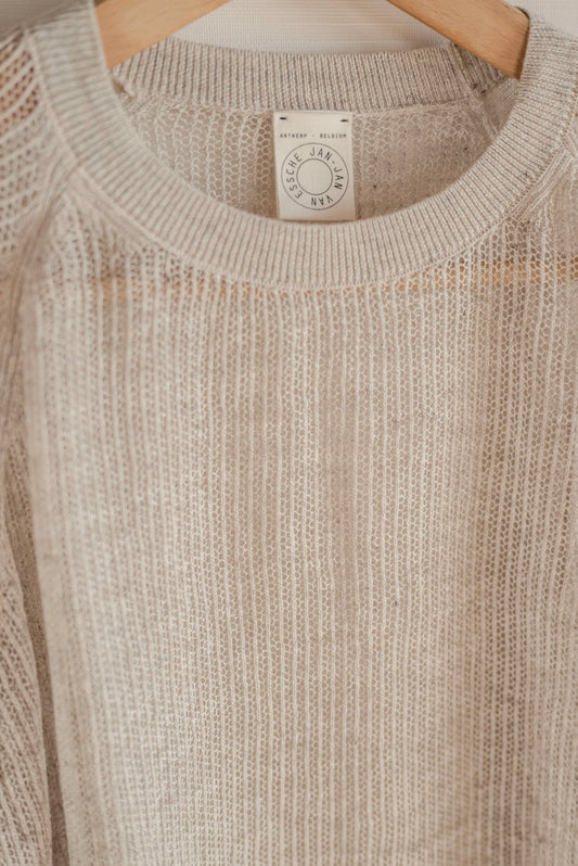 JAN-JAN VAN ESSCHE LONG SLEEVE MESH TEE LINEN COTTON YARN BEIGE