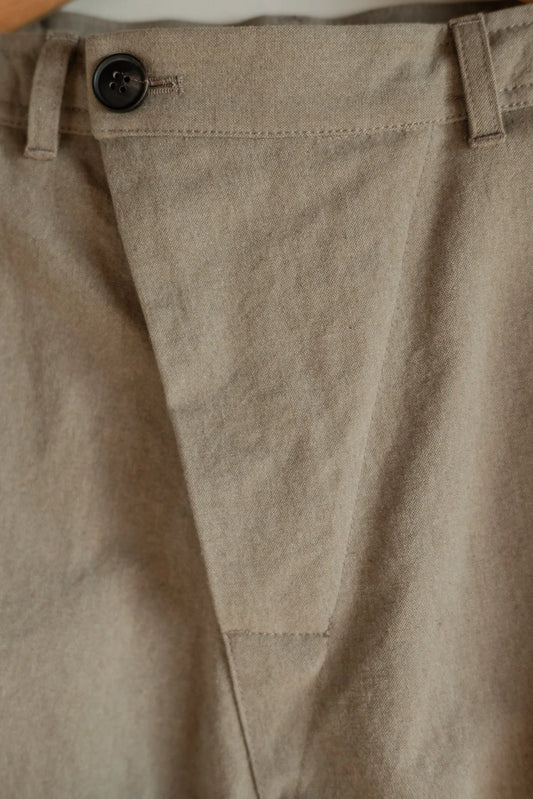 JAN-JAN VAN ESSCHE OVERSIZED 6-POCKET WORKWEAR STYLE TROUSERS CHAMBRAY CANVAS BROWN GREEN