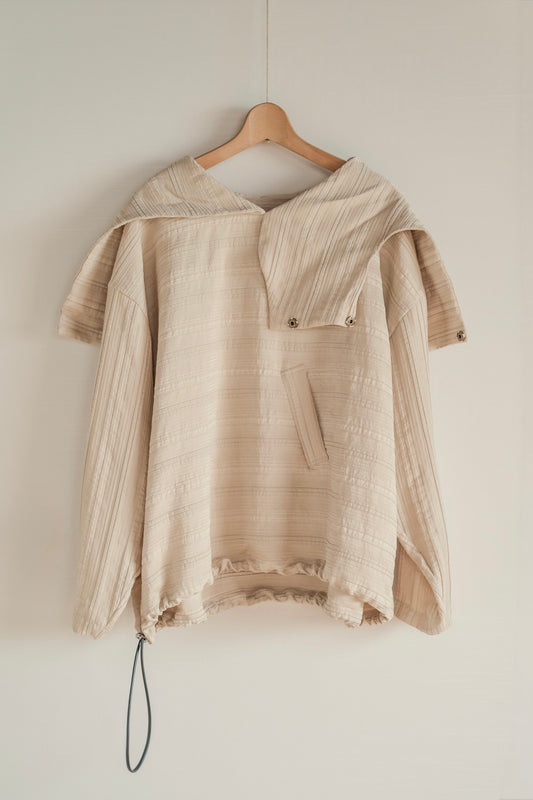 JAN-JAN VAN ESSCHE SHORT COLLARLESS SHIRT LINEN DOUBLE CLOTH PUZZLE