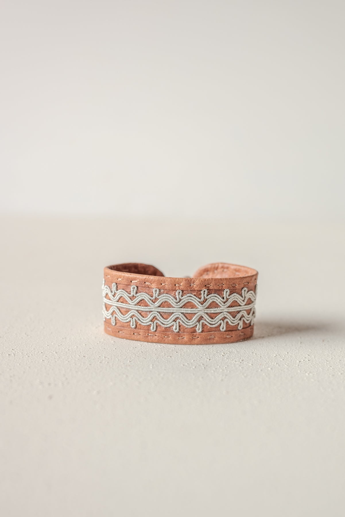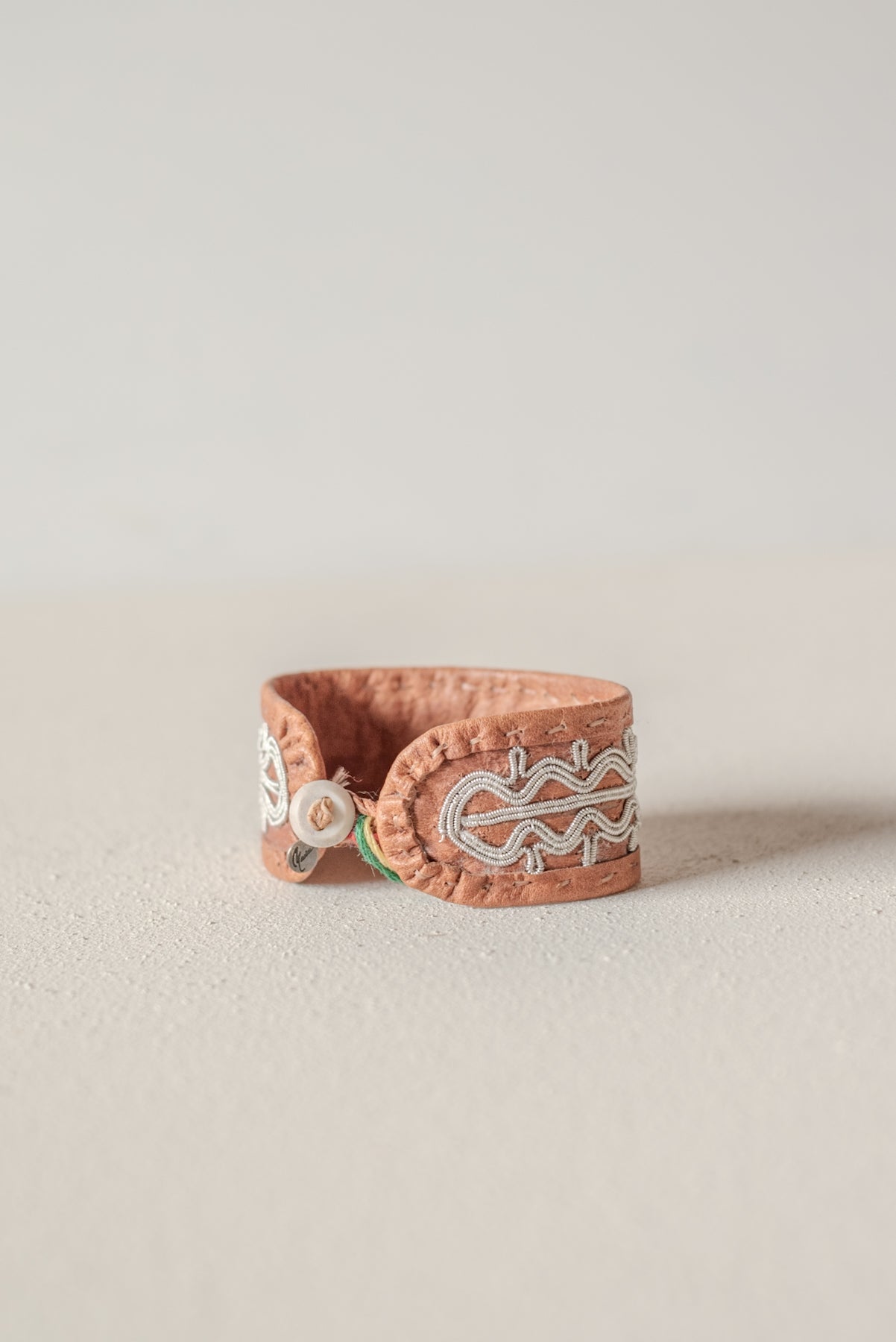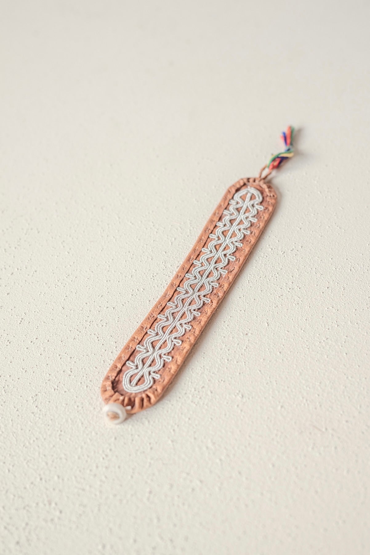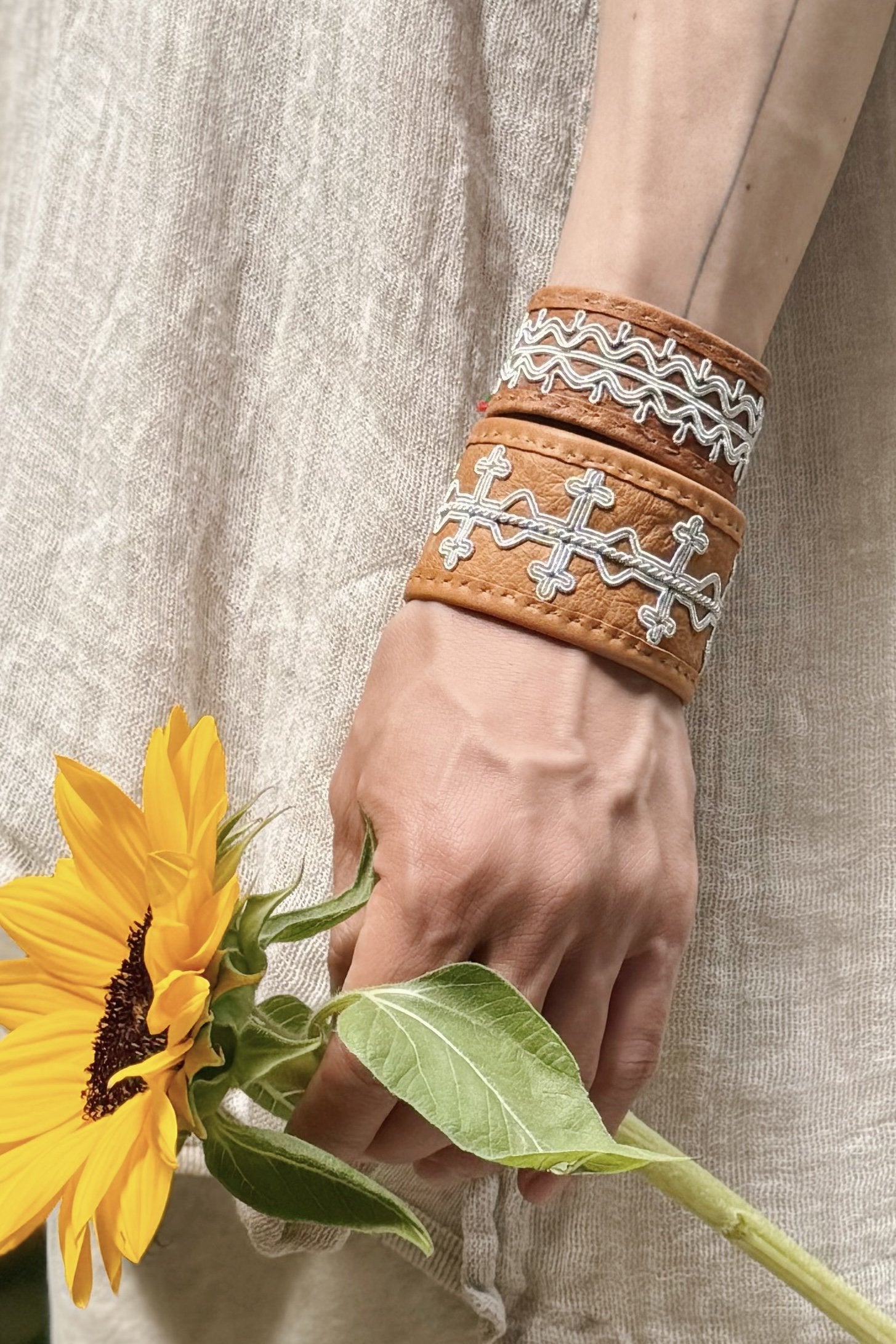 This special bracelet is carefully crafted using traditional Sámi techniques. The embroidery on the reindeer leather is beautifully finished by hand by skilled craftsmen.