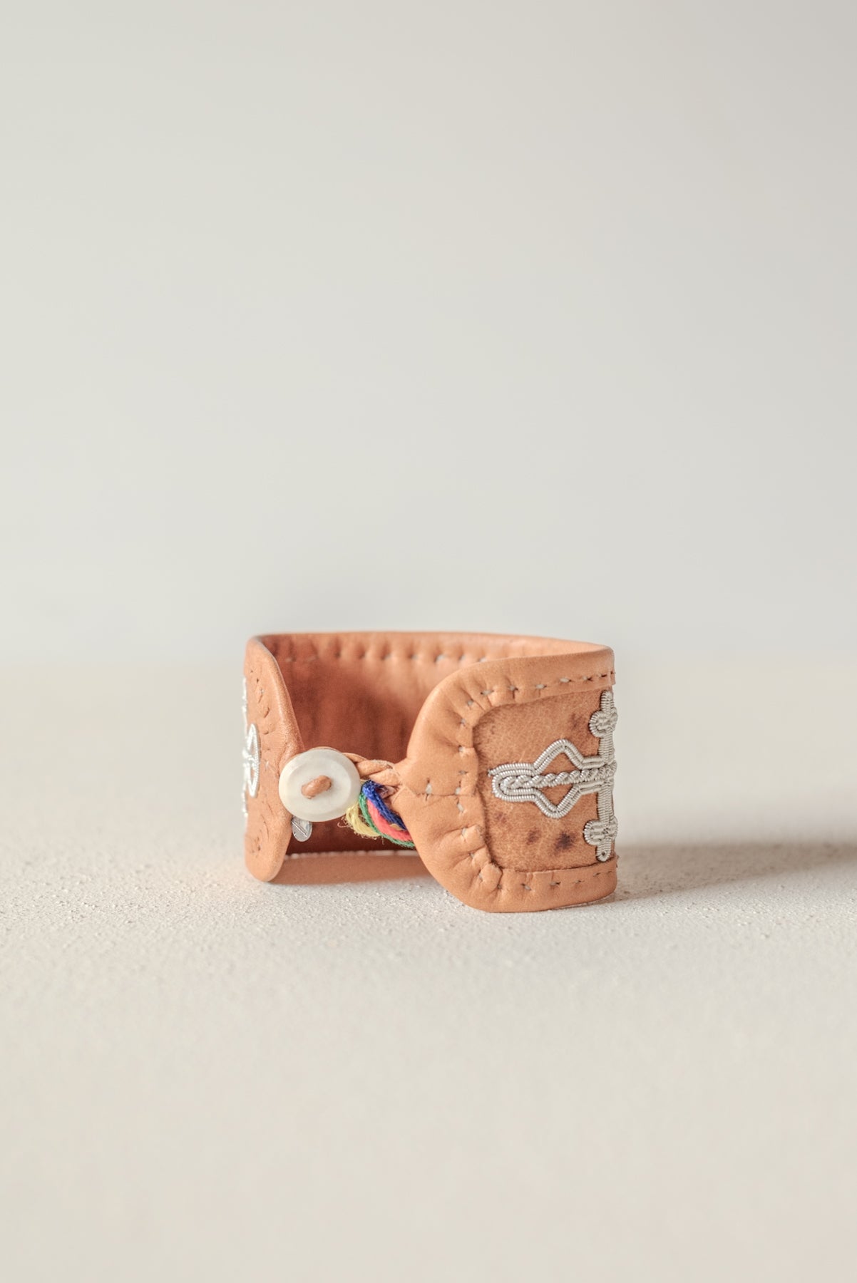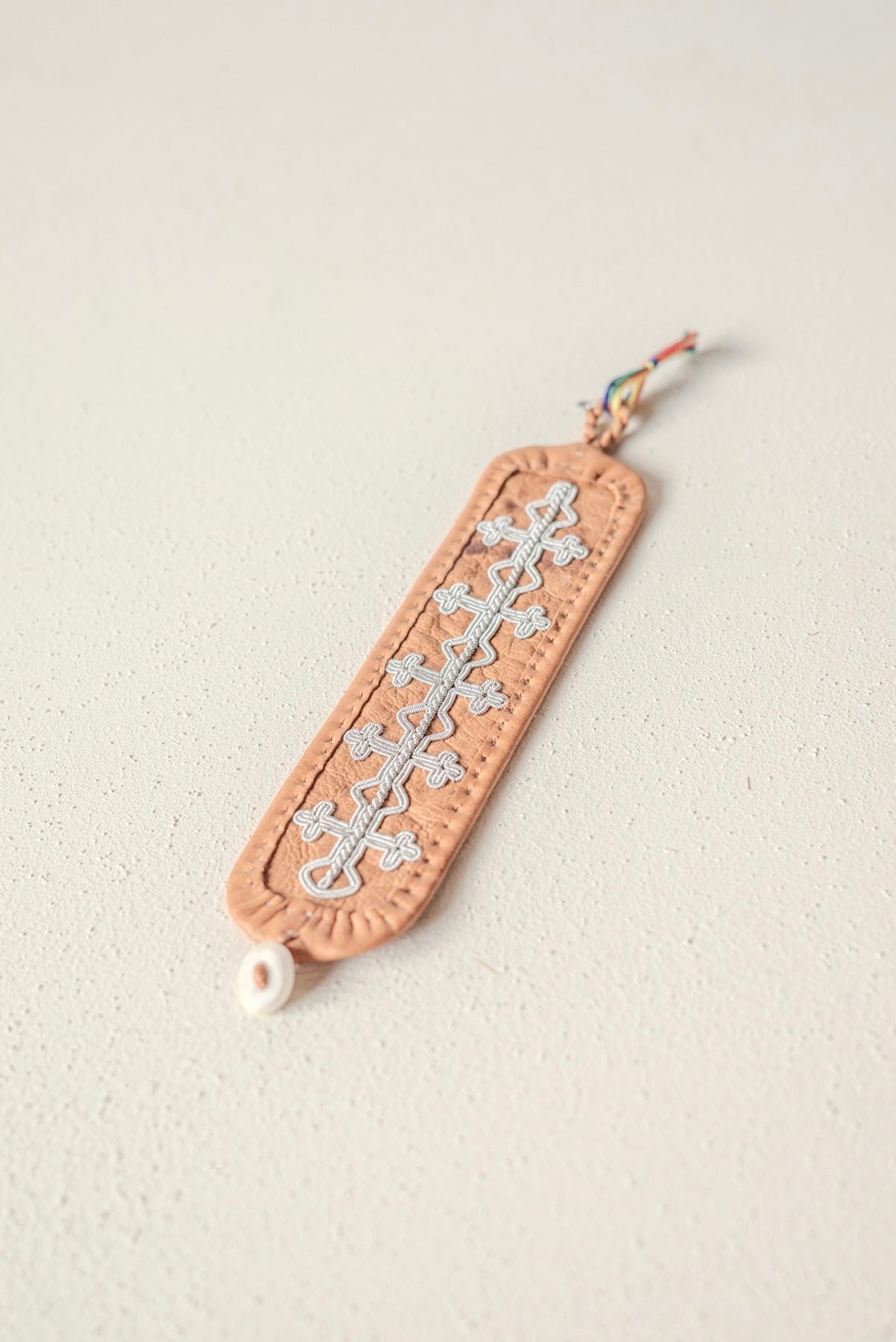 This special bracelet is carefully crafted using traditional Sámi techniques. The embroidery on the reindeer leather is beautifully finished by hand by skilled craftsmen.