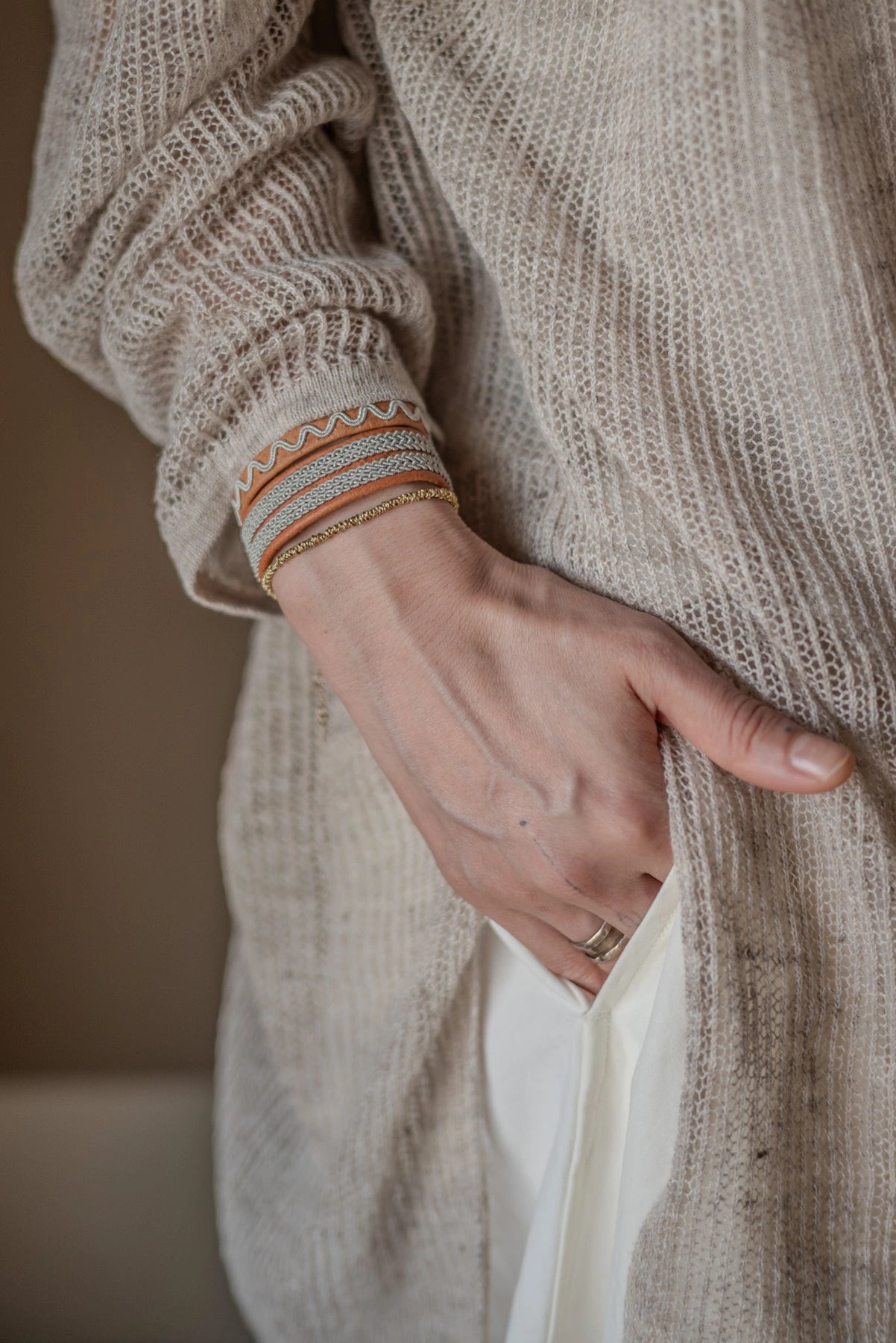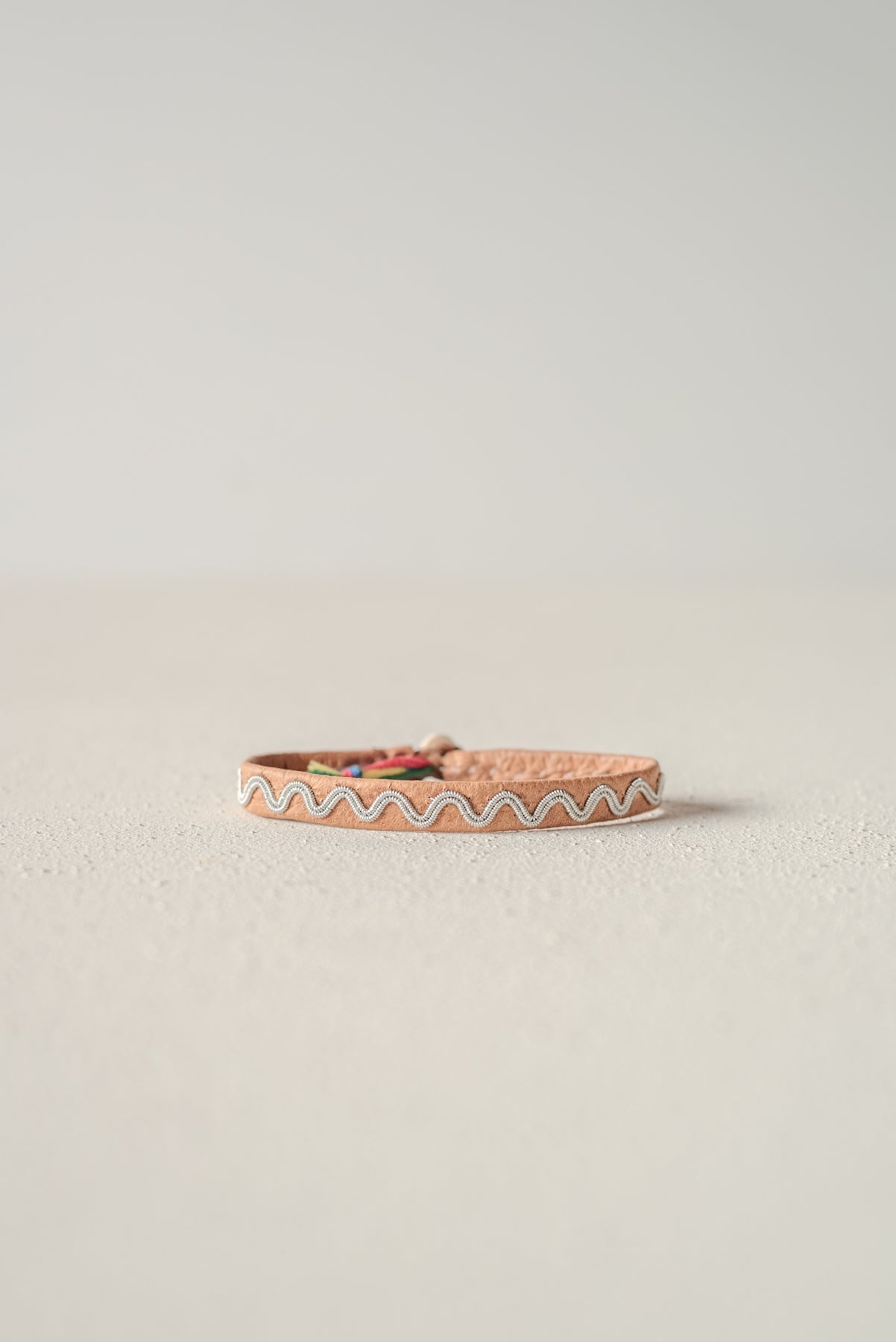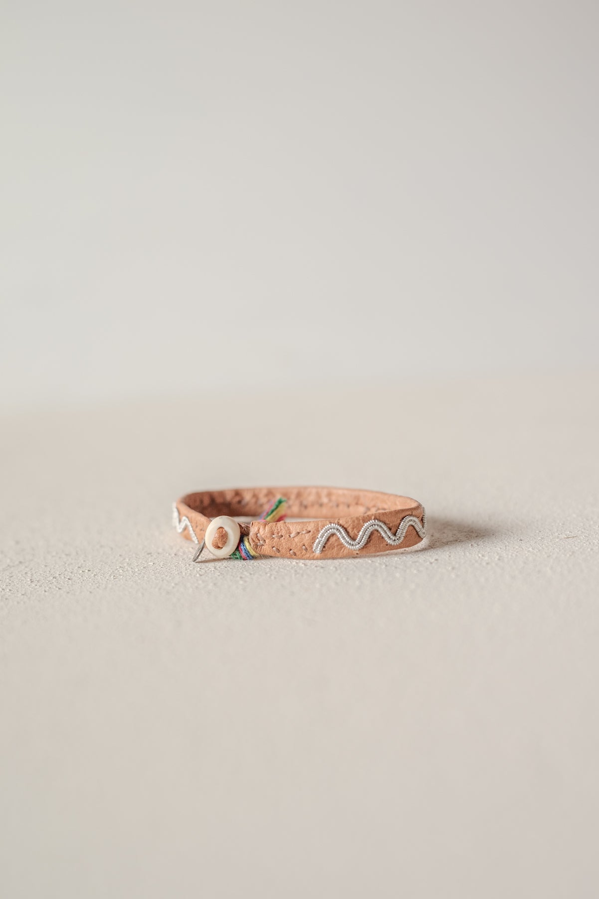 This special bracelet is carefully crafted using traditional Sámi techniques. The embroidery on the reindeer leather is beautifully finished by hand by skilled craftsmen.