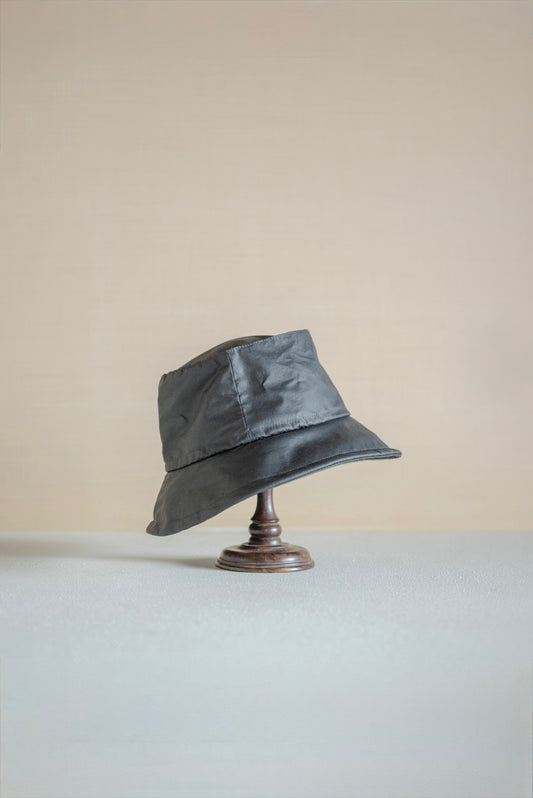 JAN-JAN VAN ESSCHE CHAPEAU BUCKET OVERSIZE EN COTON ENDUIT RIBSTOP NOIR CASSÉ
