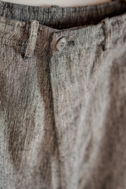 JAN-JAN VAN ESSCHE PANTALON DE COSTUME OVERSIZE EN SOIE ET LIN NOIR ET BLANC
