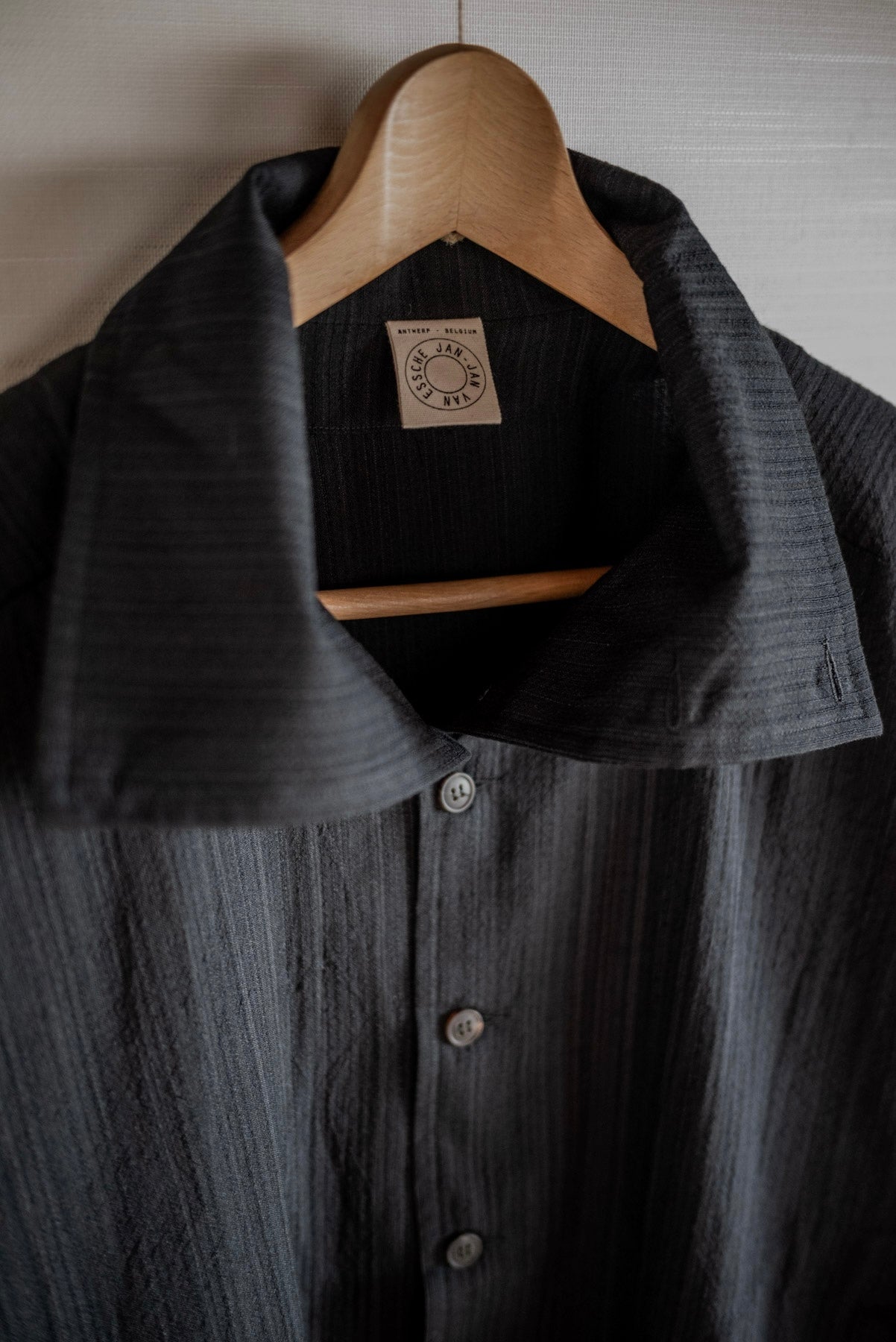 VESTE CHEMISE JAN-JAN VAN ESSCHE À COL MONTANT RAYÉ FONCÉ