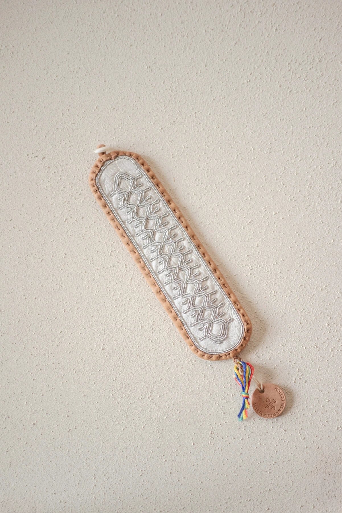 Ce bracelet spécial est confectionné avec soin selon les techniques traditionnelles sâmes. La broderie sur le cuir de renne est magnifiquement réalisée à la main par des artisans qualifiés.