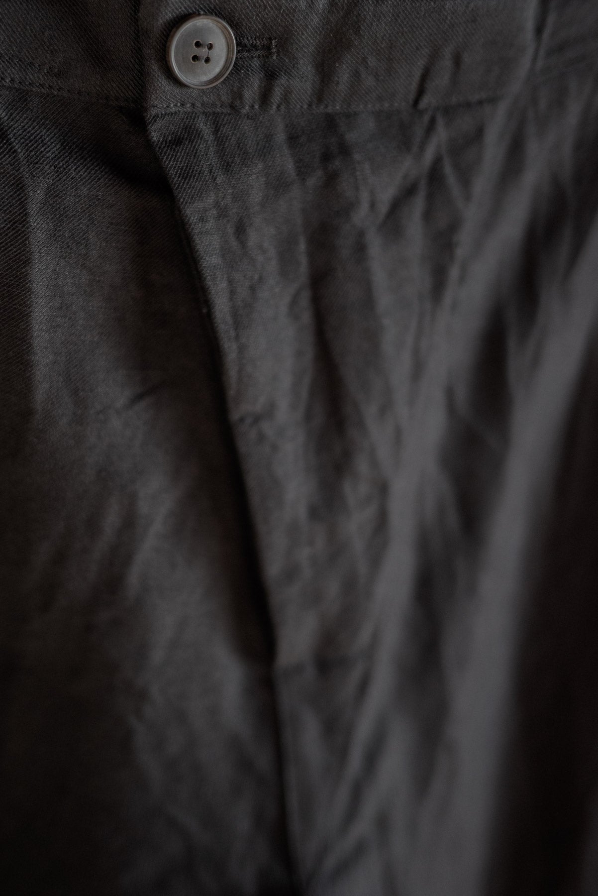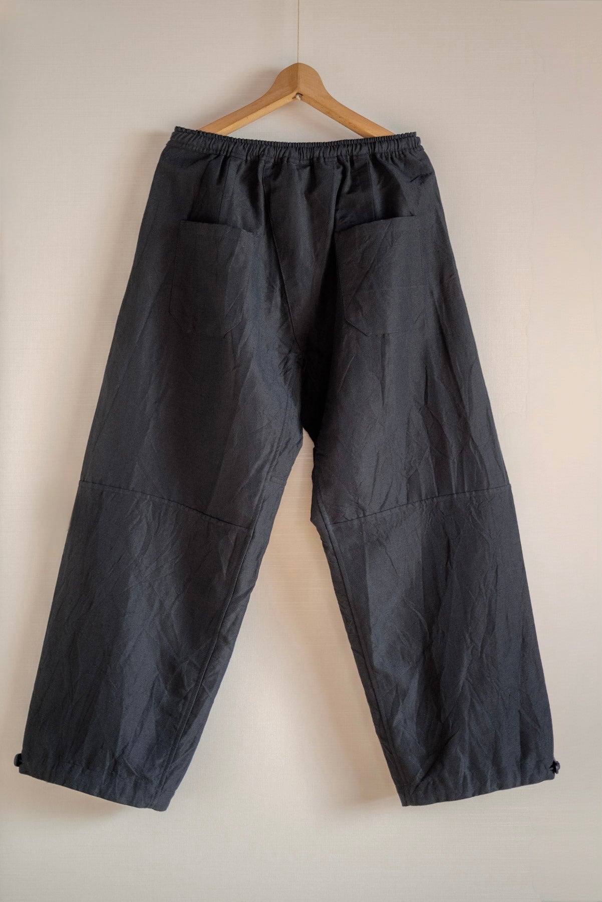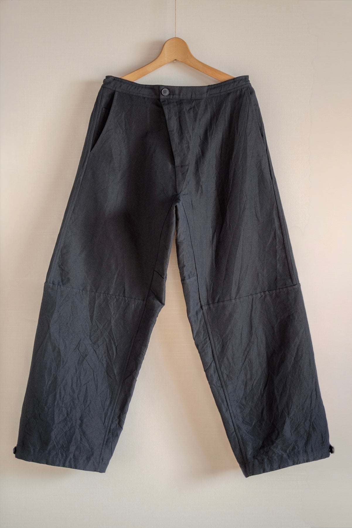 Pantalon en tissu sergé de laine et de lin.