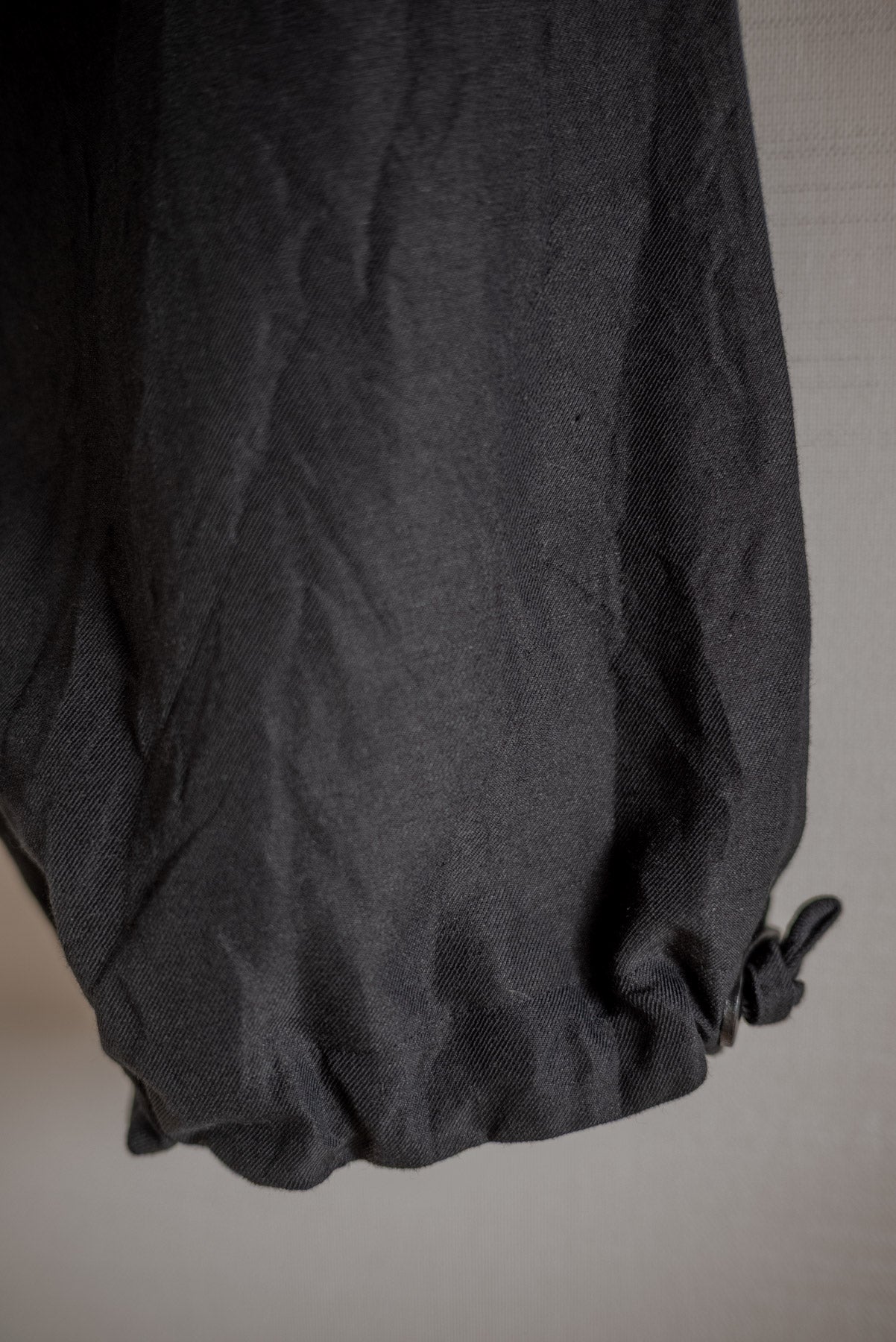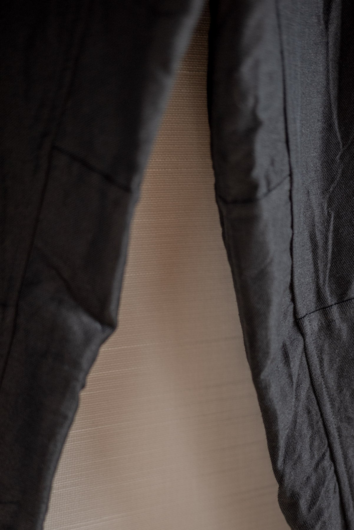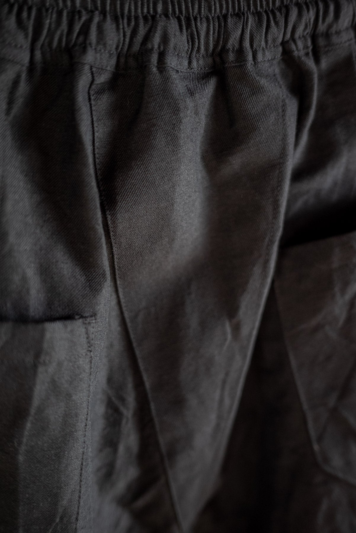 Pantalon en tissu sergé de laine et de lin.