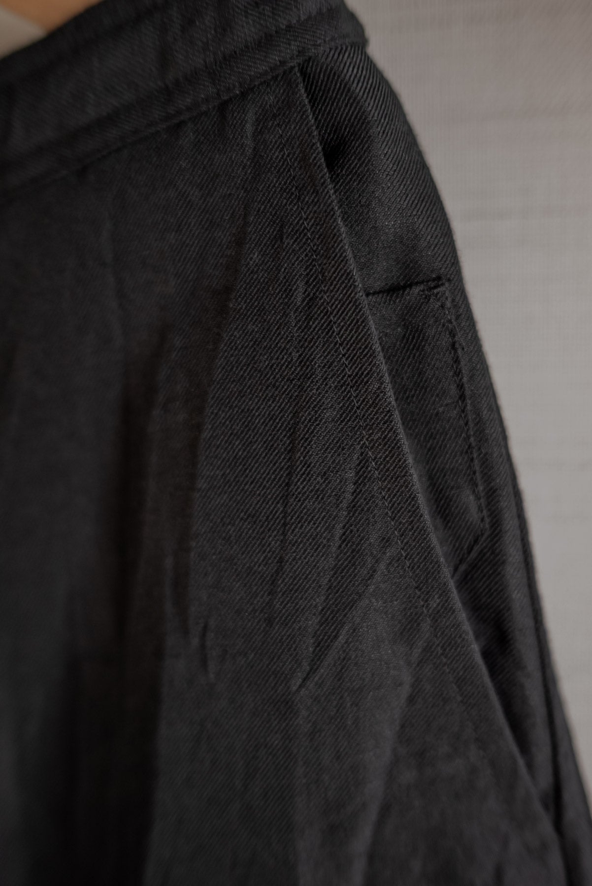 Un tissu frais et dense, séché à l'air libre. Robuste, il maintient parfaitement la structure du vêtement, tandis que le séchage à l'air libre lui confère un drapé plus décontracté.