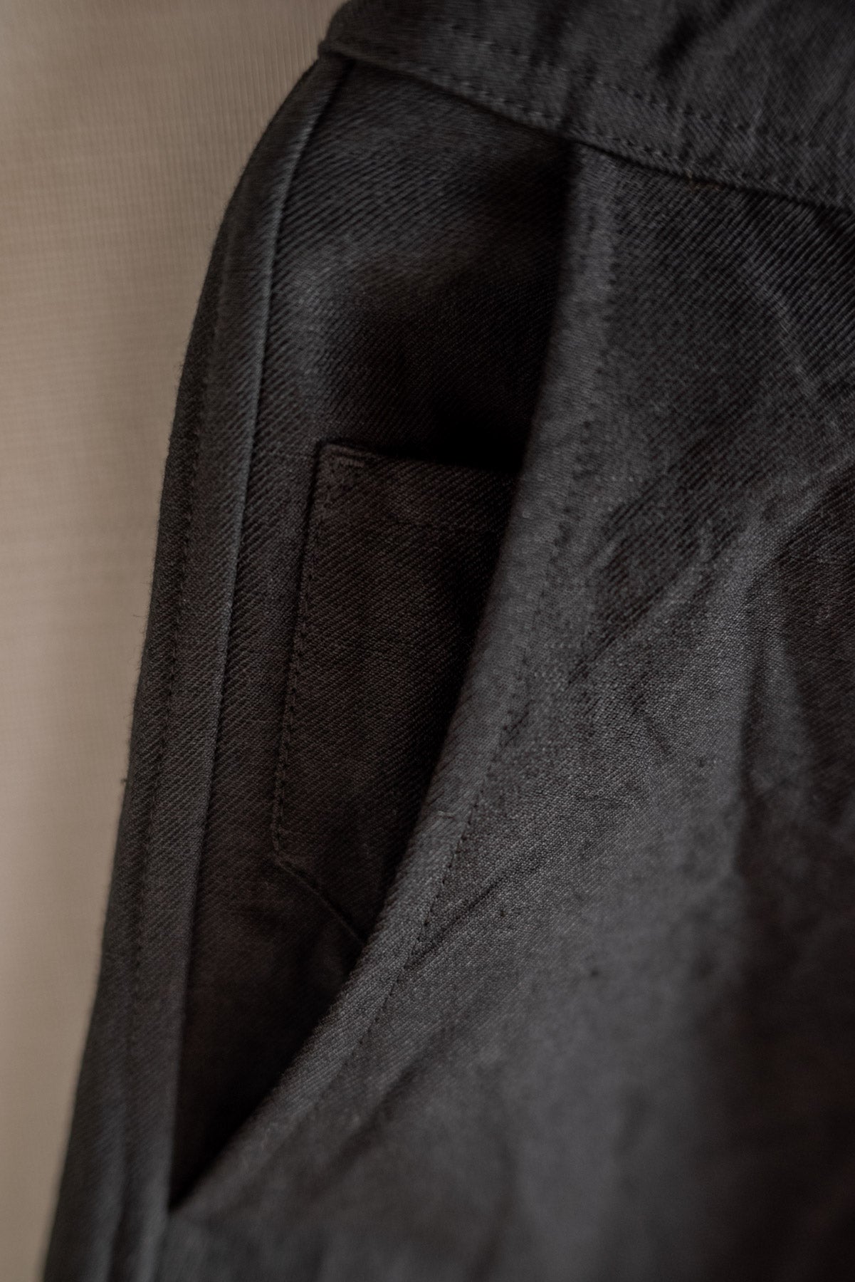 Un tissu sergé de laine et de lin avec fermeté et résilience.