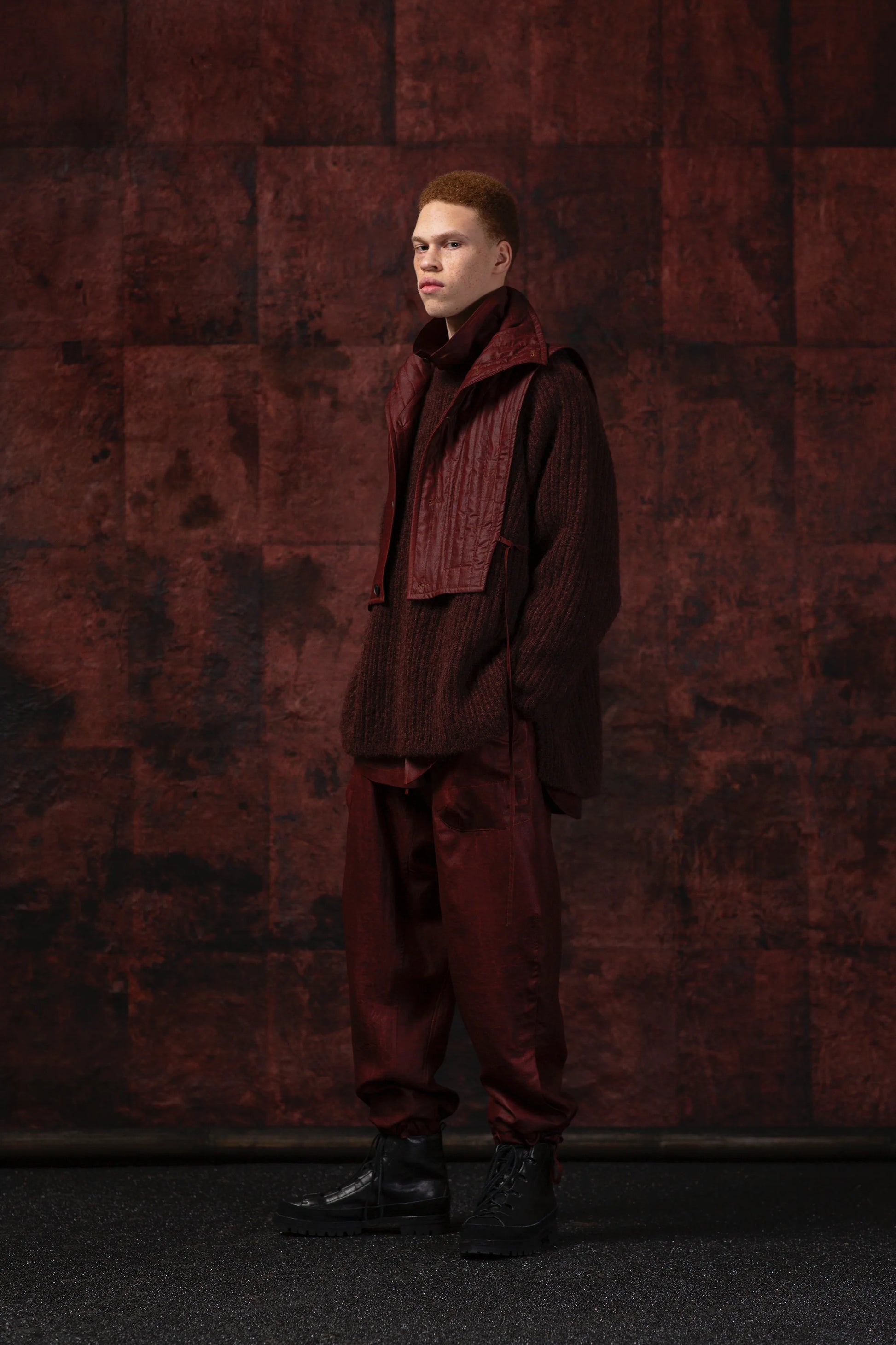 JAN-JAN VAN ESSCHE SHIRT JACKET WITH HIGH STANDING COLLAR OXBLOOD