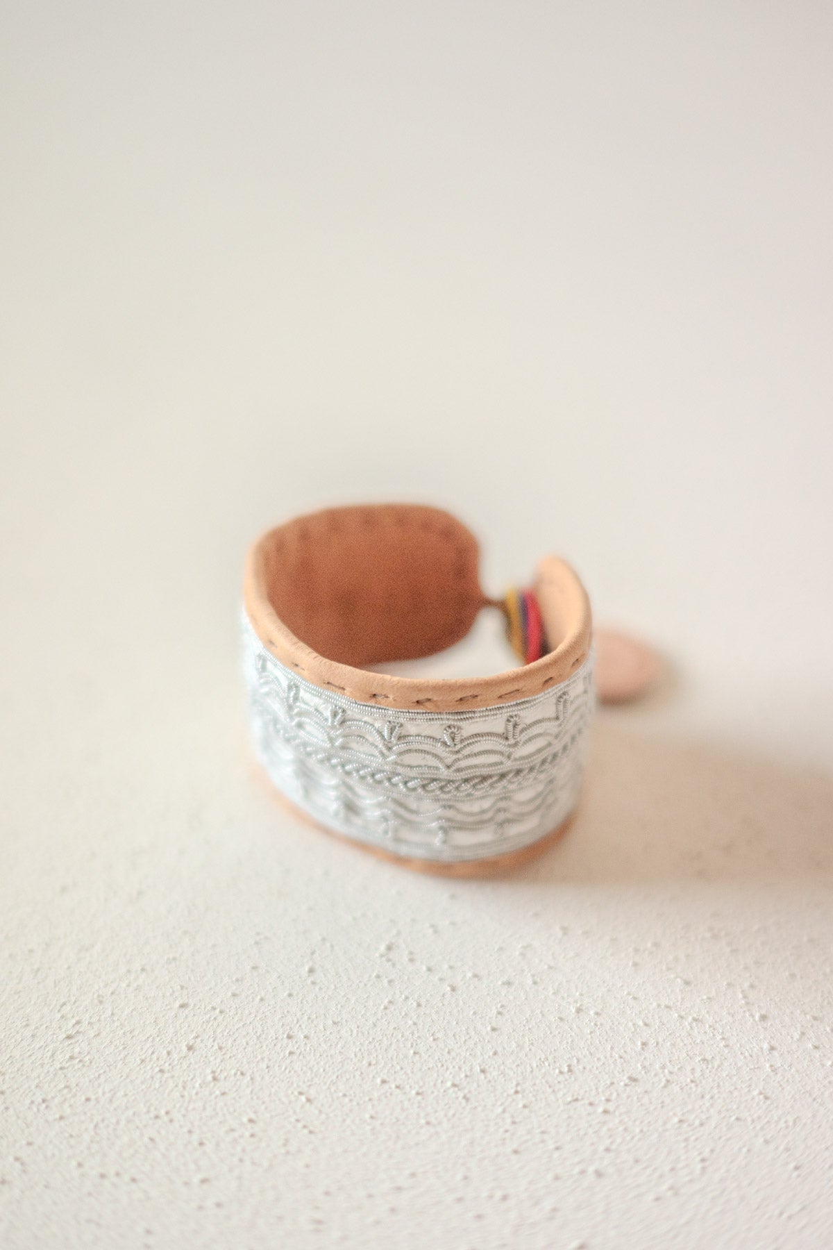 サーミ人の伝統技術を受け継ぎ、丁寧に作られた特別なブレスレットです。トナカイ革に施された刺繍は、熟練の職人による手作業で、一つひとつ美しく仕上げられています。