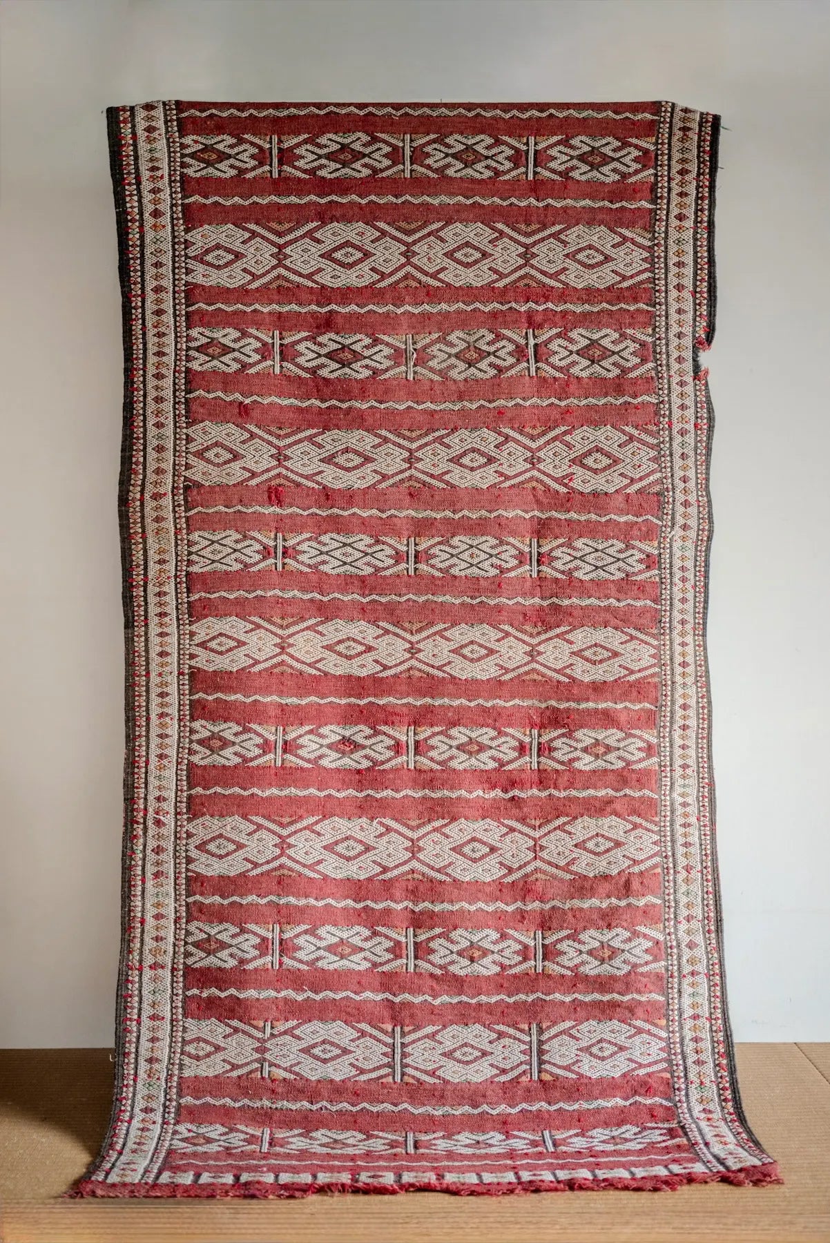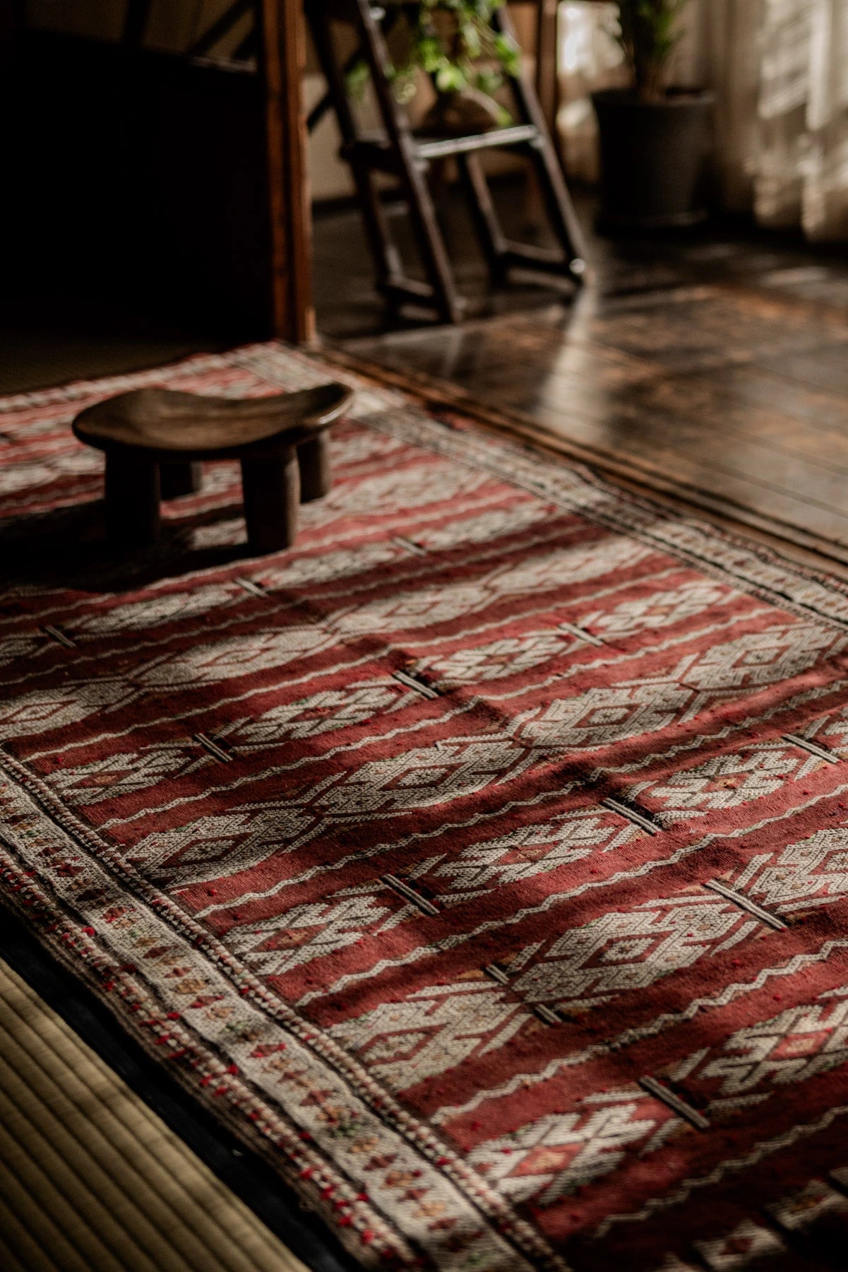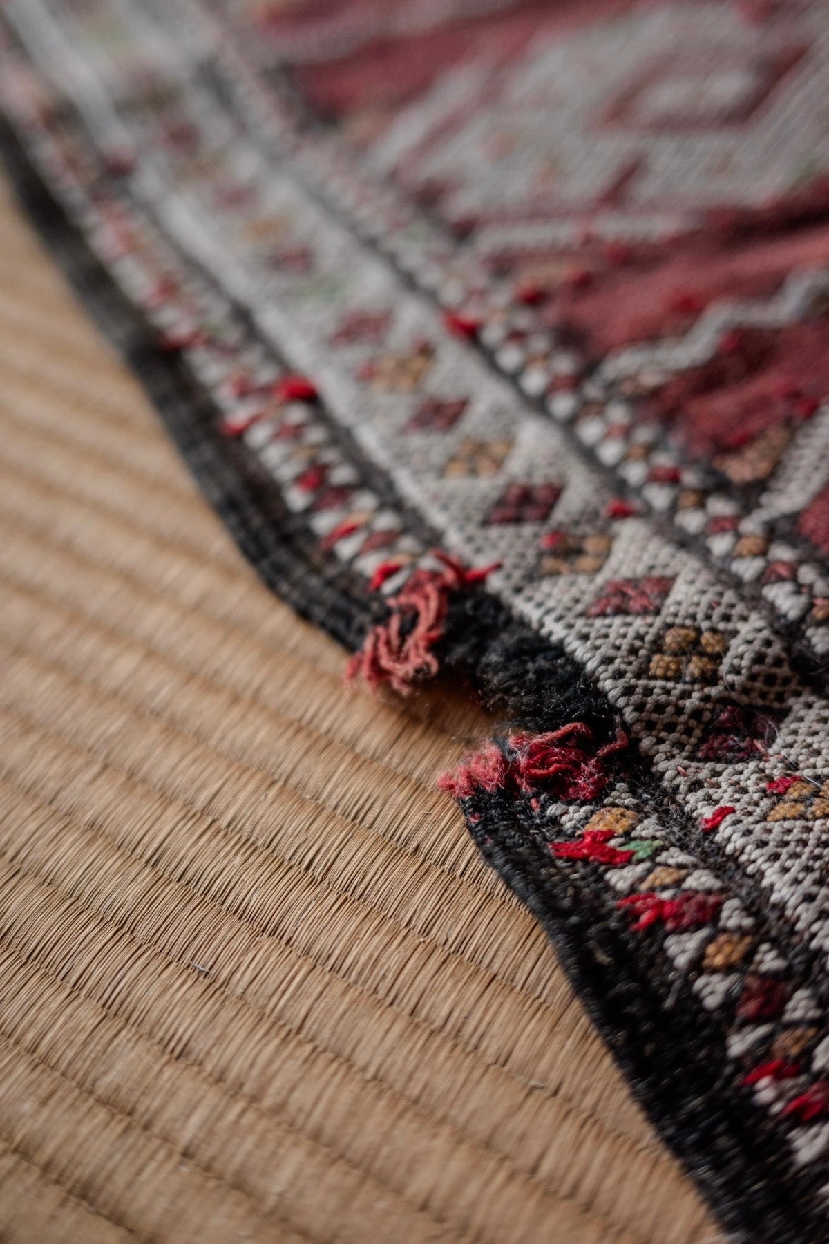 ヴィンテージラグ特有の時間の表情としてお楽しみください。