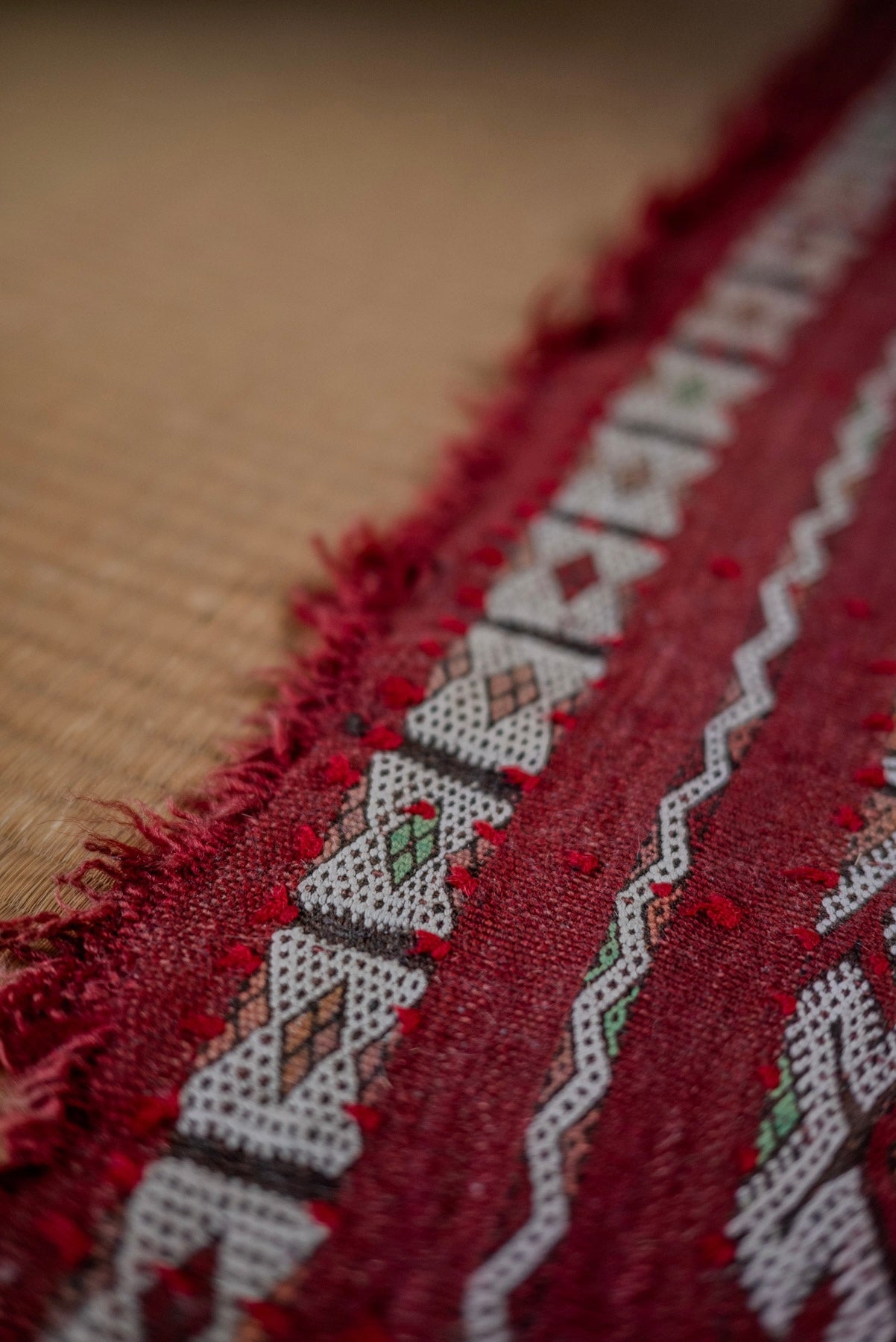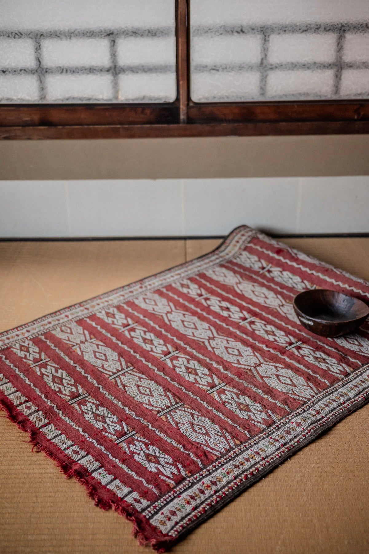 高密度に織られ、空間全体の視線を落ち着かせる重心の低さがあります。