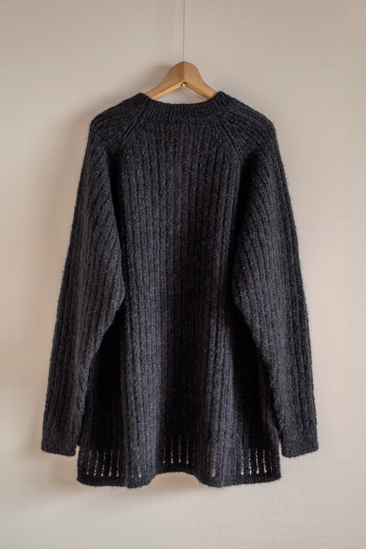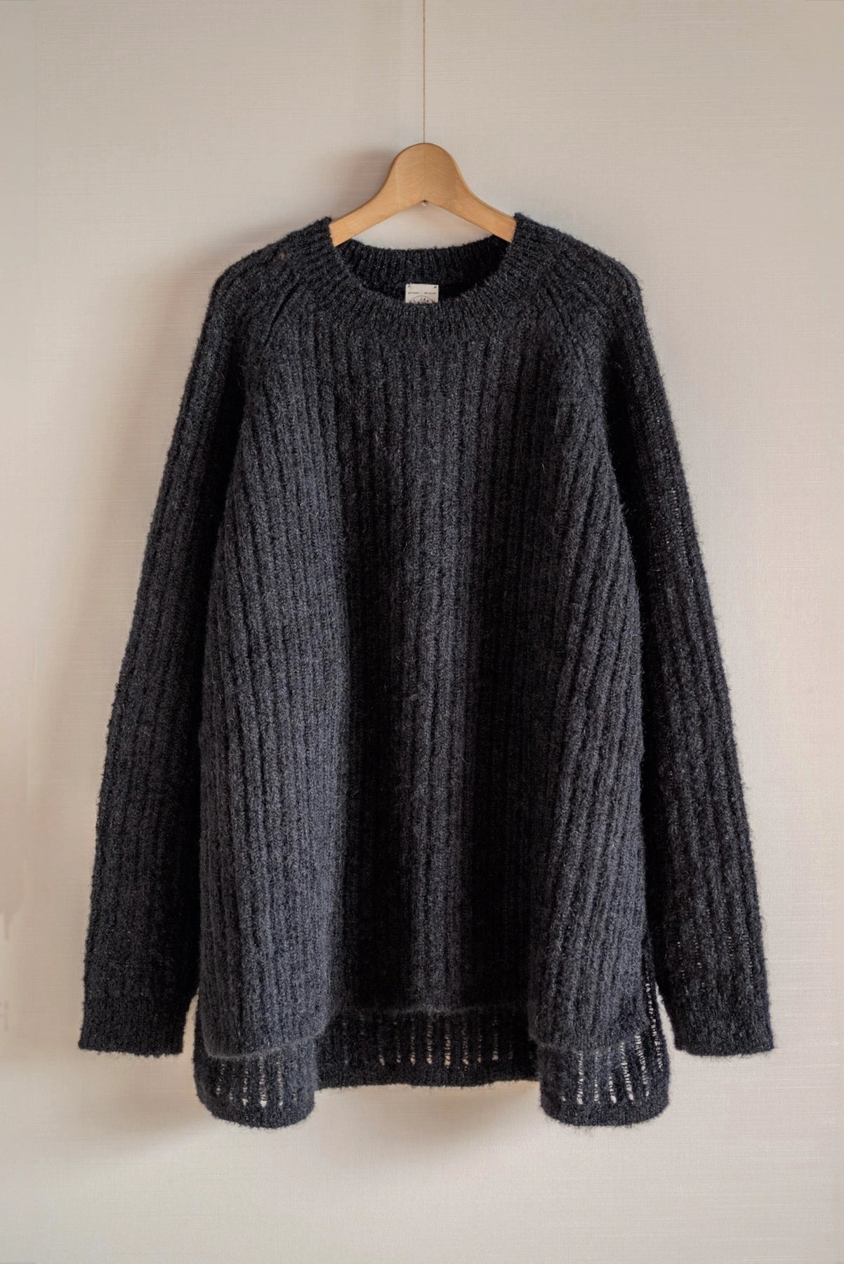 JAN-JAN VAN ESSCHE WIDE FIT KNITTED CREW-NECK SWEATER GOAT MOHAIR BLACK