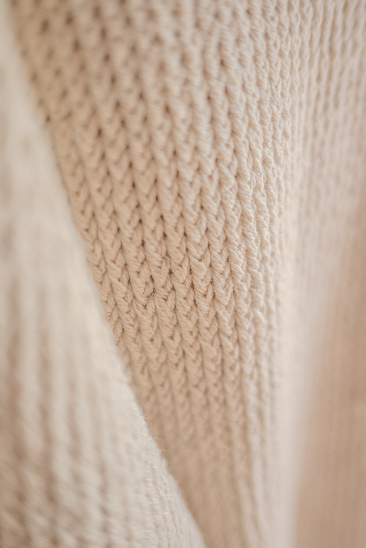 肌触りが良く、ローゲージで編まれているため通気性にも優れ、快適に着用できる上質なニット。