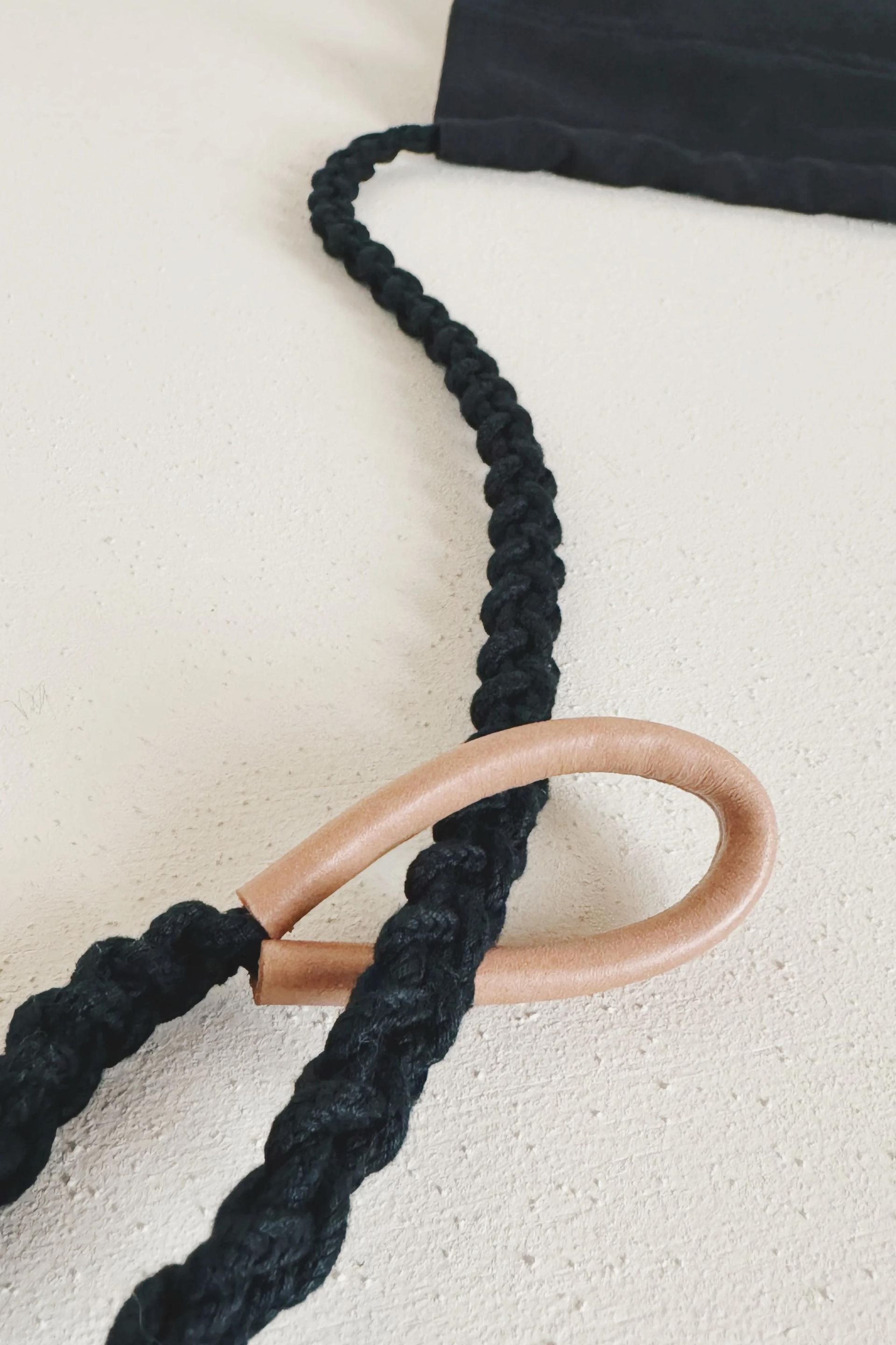 インハウスで製作されたハンド クロシェッ ロープは、レザーと組み合わさり、様々な着こなしをお楽しみいただけます。